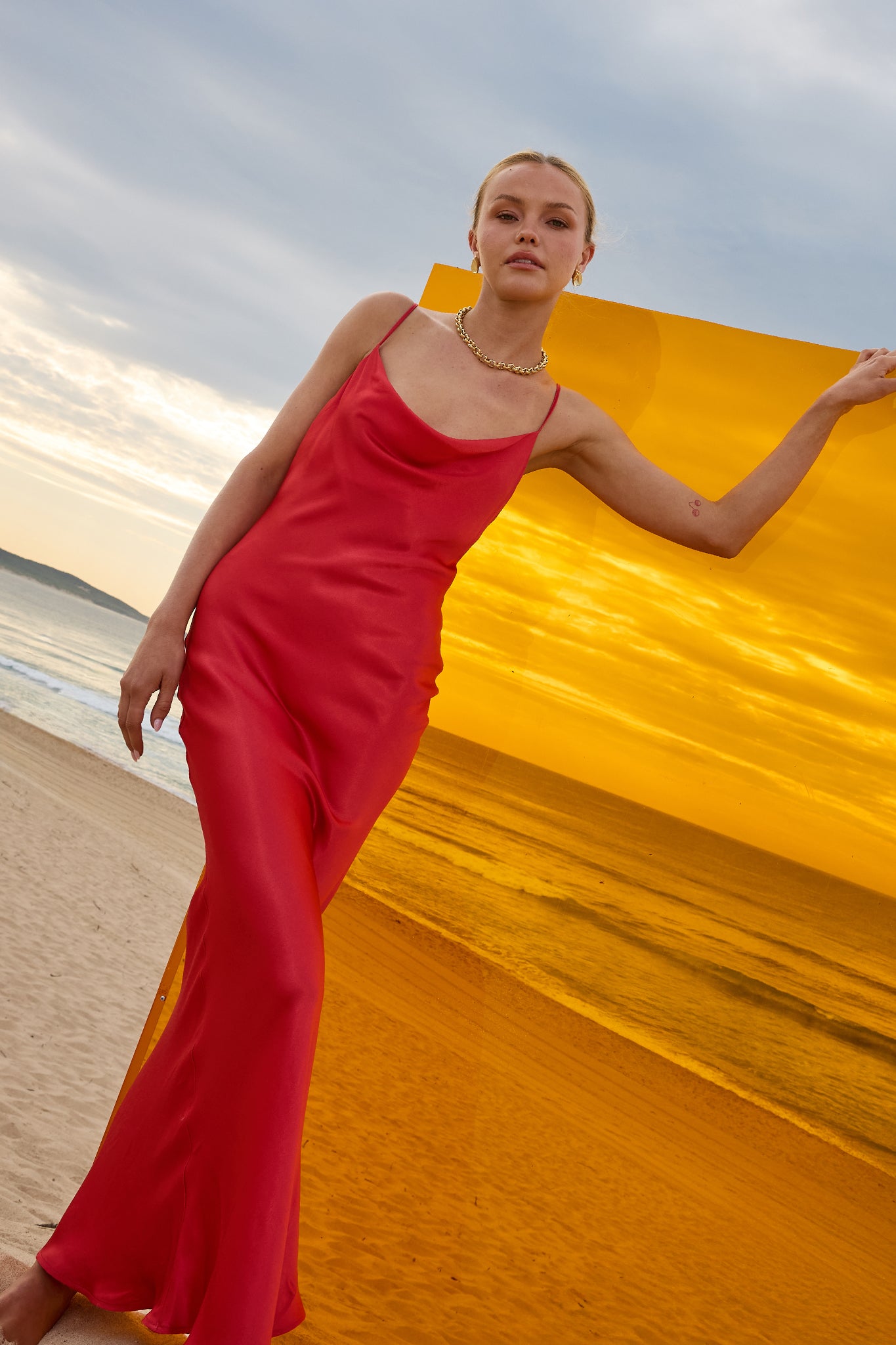 Inspired by slim Aarons’ lens and the timeless allure of coastal leisure, the collection drapes linen, taffeta and organza in silhouettes that echo barefoot afternoons, long lunches and the quiet confidence of women who embody elegance without effort.